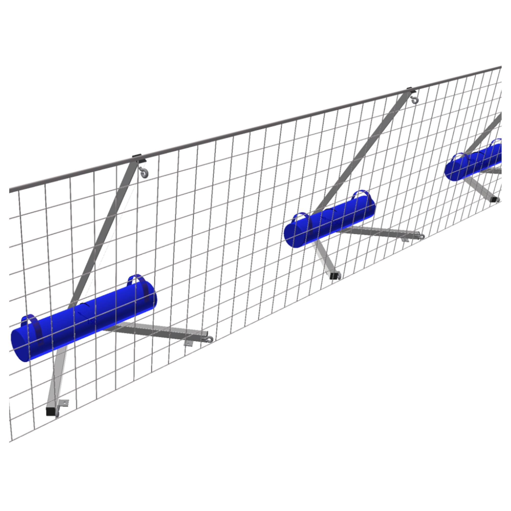 Отбойник (сетка) крепится к металлическим опорам конструкции.